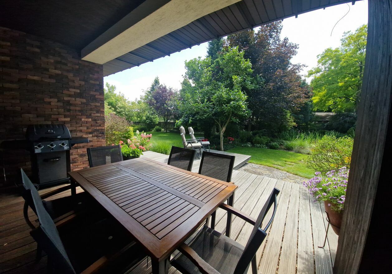 Bardzo dużym atutem nieruchomości jest piękny zadbany ogród z nasadzeniami drzew i krzewów kwitnących w różnych porach roku.