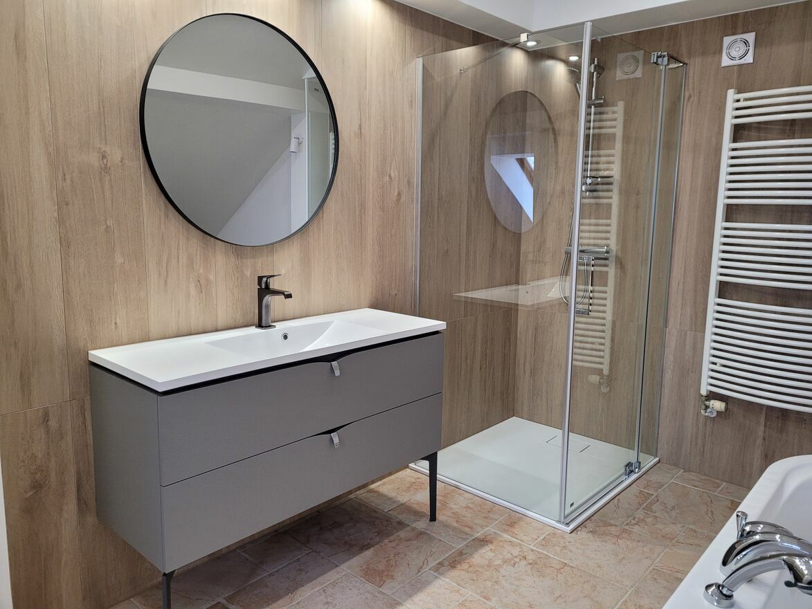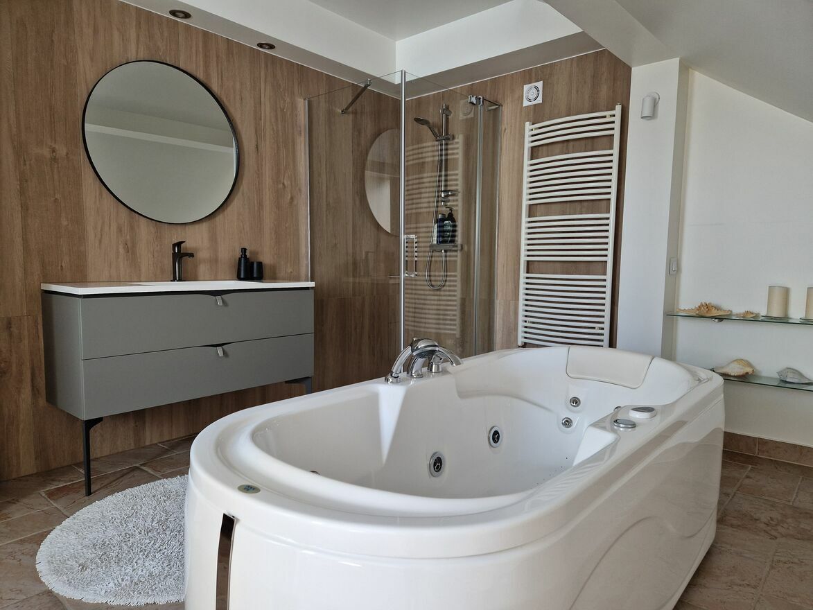 Nieruchomość bardzo zadbana z meblami w zabudowie, utrzymana w jasnej ciepłej kolorystyce z dodatkiem drewna.