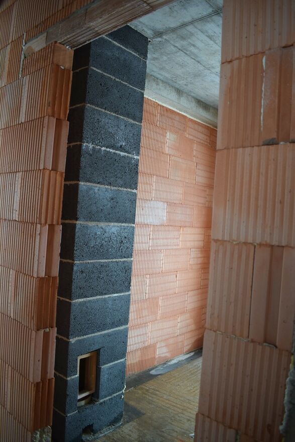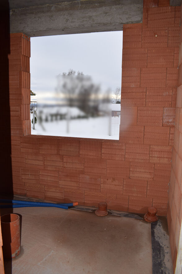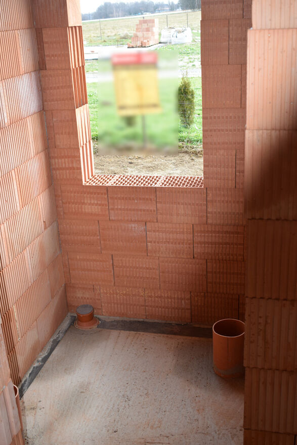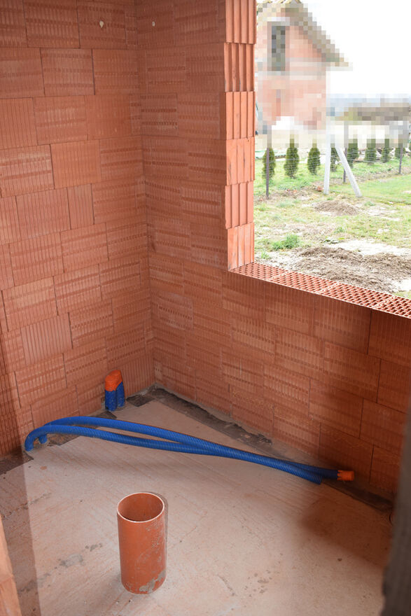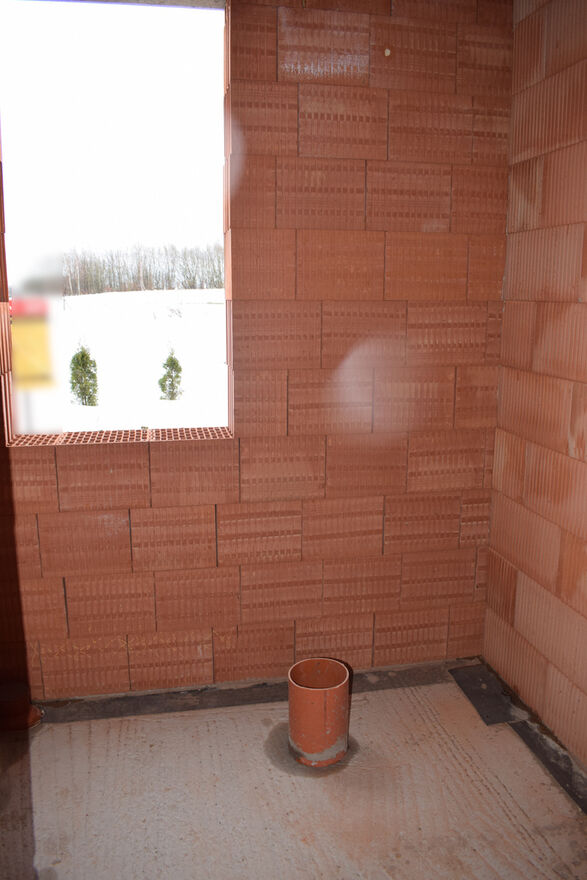 zbudowany z pustaka ceramicznego, położony na działce 7.9a w gminie