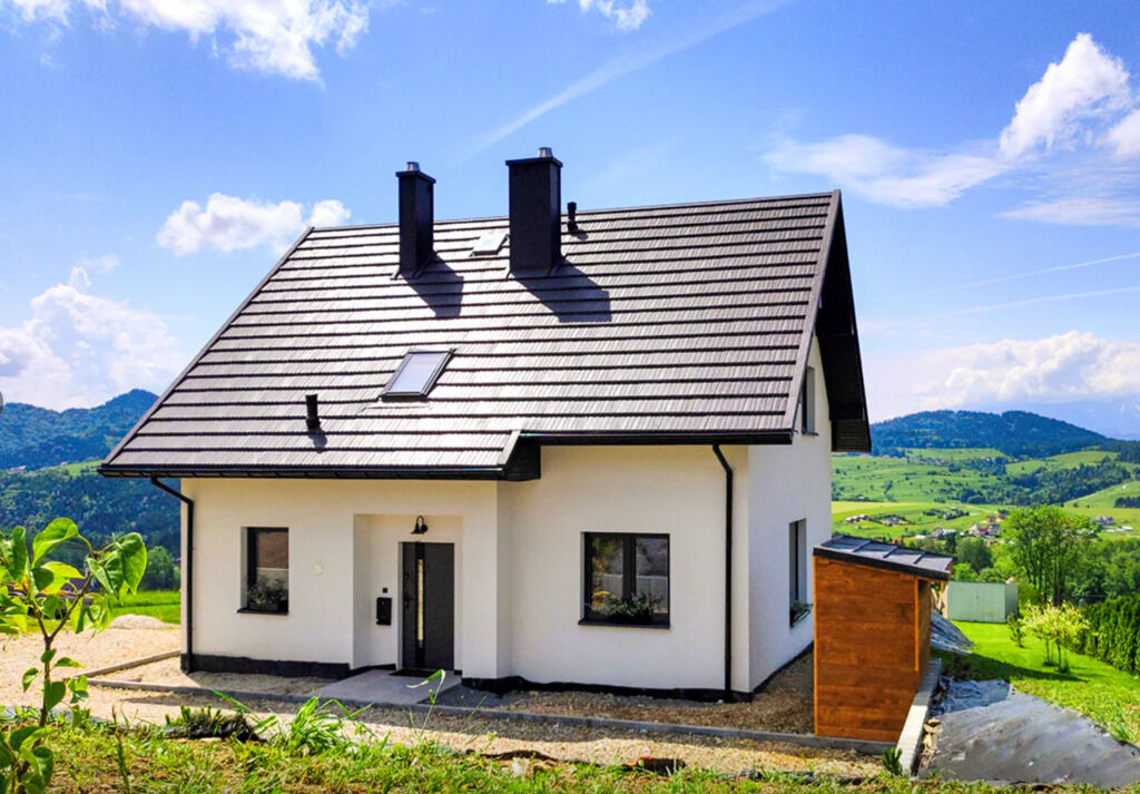 Dom położony jest na widokowej działce z panoramą na okolicę.